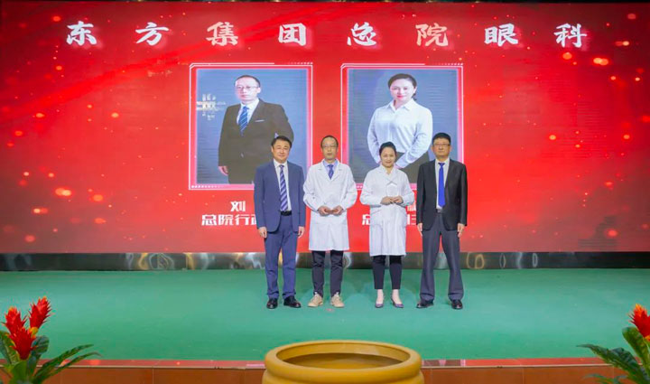 集团领导为东方医院集团总院眼科行政主任刘辉、总院副主任甘柳颁发聘任奖杯。