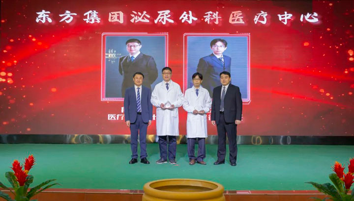 集团领导为东方医院集团泌尿外科医疗中心院长段传军、总院行政主任赵红颁发聘任奖杯。