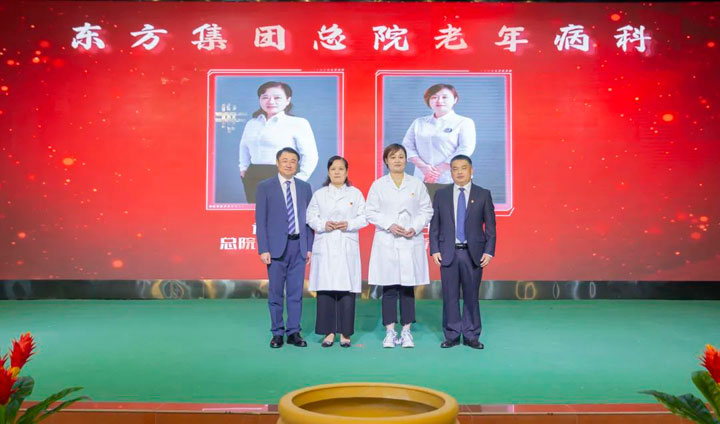 集团领导为东方医院集团总院老年病科行政主任谭震、总院副主任王蕾颁发聘任奖杯。