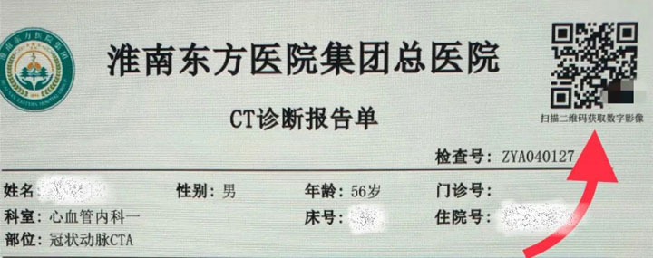 方式二:扫描检查执行单上的数字影像二维码获取电子报告和电子胶片。