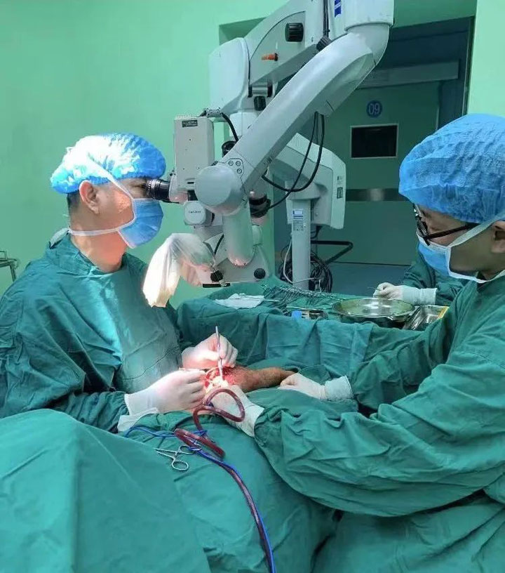 经历了之前三次手术和相关护理,伤者袁女士及家人真真切切感受到技术水平和职业精神,心态越来越平稳,对下一步治疗也充满了信心。在经过充分论证和准备后,最后一场手术终于来了!手术中,陶主任需要对伤者大拇指进行再造。他将伤者左侧的脚拇指截取一半,然后移植到伤者左手拇指上,完成了“移花接木”的操作,团队密切配合,丝丝入扣……