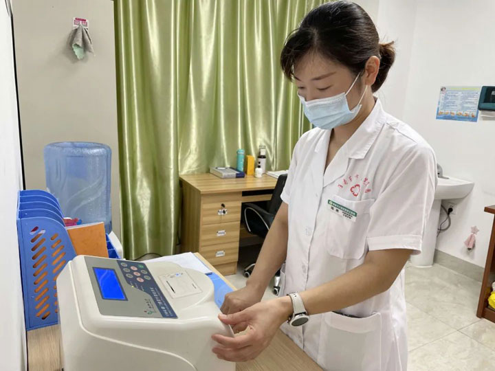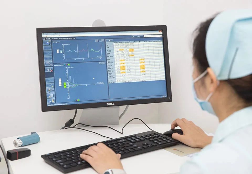 于此同时,新科室更配备了GE双能X线骨密度仪Prodigy Pro、丹麦丹迪肌电图-诱发电位仪 Keypoint9033A07、超声经颅多普勒血流分析仪EMS-9EA 、南京伟思脑电地形图、德国耶格肺功能测试系统 MasterScreen、欧姆龙压缩式雾化器等多种先进设备。许多仪器都是这两年刚刚更新的,在省内处于较为领先水平。其中,陈艳主要负责肺功能检查和呼吸治疗室的工作,兼顾骨密度检测工作等。
