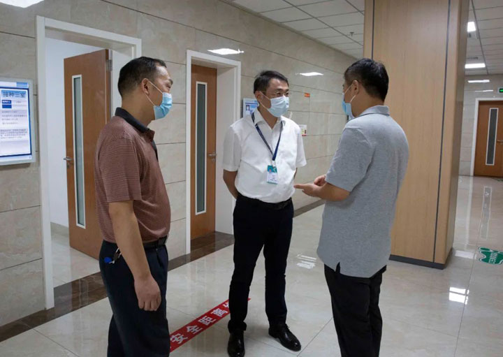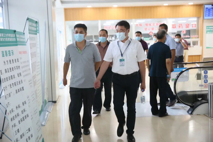 抓紧抓实抓牢疫情防控工作为做好“新冠肺炎”疫情防控工作,根据省疫情防控应急综合指挥部的部署要求,省卫健委开展全省医疗卫生机构疫情防控督导工作。2021年8月6日下午,省卫健委体改处处长王长丰、安徽省疾控中心艾防科科长程晓莉、安医大二附院院感科主任杨锡瑶、省卫健委综合监督所卫生监督员陈健一行到淮南东方总院预防接种门诊等地进行疫情防控督导。淮南市卫健委副主任邸允辉、法律监督科科长方磊以及淮南东方医院集团董事长江永强、集团副总经理鲁殿佩、总院副院长朱胜、总院院长助理樊忠胜、感控科科长杨淮丽等人陪同。