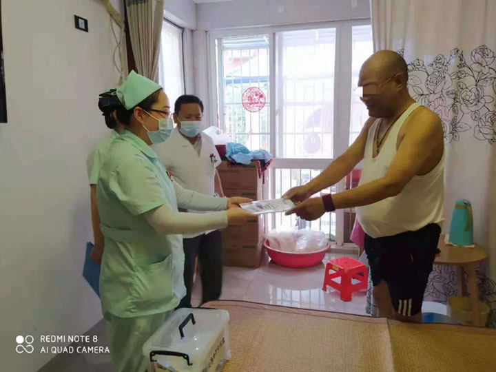 对于腹透患者,每3至6个月要进行腹透短管更换。有一次电话随访中发现一个腹透患者已经到了更换短管的时间但却迟迟未来医院更换,蔡护士便立刻打电话询问,得知该透析病人由于骨折无法来院更换短管,蔡护士主动找到主任、护士长商量想着帮忙解决,第二天,她与主任、护士长一起亲自到患者家中为其换管。换管结束,蔡护士更是反复认真交代病人及家人下一次复查具体时间,临行时家属感动的握着她们的手说:“真是太谢谢你们了,让我们足不出户,就能享受到三级医院的好服务!”