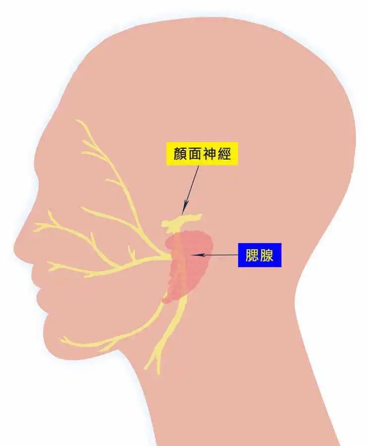 总院口腔科李钱山主任介绍,腮腺俗称耳下腺,是人体最大的一对唾液腺,分为深、浅两叶。控制人们表情的面神经穿行于两叶之间,在腮腺内分成两干后,又分成颞支、颧支、颊支、下颌缘支和颈支等五支,最后呈放射状分布至面部表情肌。腮腺的主要作用是分泌唾液,是人体的消化器官。位于耳垂下方与下颌骨后缘之间的三角形间隙内,这个狭小的部位即使长出包块也不易被察觉。此部位也易发生炎症,如:流行性腮腺炎、化脓性腮腺炎等。腮腺肿瘤80%以上是良性的,其中以混合瘤(又称多形性腺瘤)最多见,像唐先生所得的腮腺多形性腺瘤,和青年相声演员岳某正属于同一类型。
