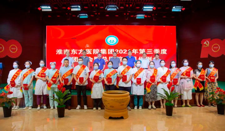 随后,陆宝书记宣读东方医院集团2021年度第二季度“东方服务明星”及总院2021年第二季度“东方服务明星”先进个人表彰决定。授予张樊、刘岩、张露露、计翠翠、张琳琳、王晶波、顾冕、尹婕、刘莹莹、齐燕等十位同志为东方集团“东方服务明星”荣誉称号,授予李玉、李倩倩、蔡青、高飞、蔡杏杏、张莹莹、张瑾、胡婧、杨明等九位同志为总院“东方服务明星”荣誉称号。集团领导分别为表彰人员颁奖并合影。