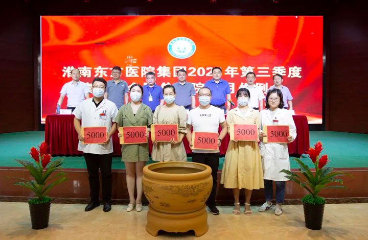 “宝剑锋从磨砺出,梅花香自苦寒来”。鲁殿佩副总经理随后宣读了在2020年度临床营养师考核中,通过不懈努力顺利通过考核并取得资质的六位临床营养师名单,并由集团领导分别为总院倪荣萍、丁佳佳,肿瘤医院陈敬、刘瑞,凤凰医院廖兰君、苏振珠等六位同志颁发5000元奖励。