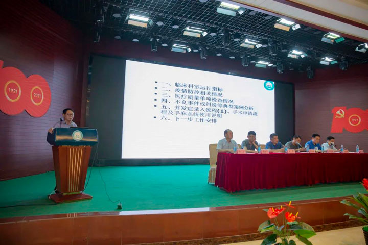 詹一朝副院长首先做总院7月份医疗质量反馈报告,从全院临床科室运行指标、疫情防控相关情况、医疗质量单项检查情况、不良事件或纠纷等典型案例分析、并发症录入流程、手术申请流程及手麻系统使用说明、下步工作打算等六个方面,结合医政部、护理部、质控办、药学部、院感等职能部门督查情况,全面详实地进行了综合反馈。在医疗质量单项检查中,詹院长要求各科室要进一步优化服务流程,对存在的突出问题、投诉问题尽快查漏补缺,迅速整改。针对不良事件或纠纷等典型案例分析,要汲取教训,密切观察患者病情,杜绝类似事件的再次发生。詹院长同时对全面推进日间手术与日间化疗工作,规范医疗服务能力与医院质量安全,核心制度的修订、编册、培训,完善病案首页信息化限制与排他功能,严抓质量与安全改进目标落实、积极推进三甲创建、职能部门深入一线指导、集团内双向转诊与分级诊疗、DIP规范化落实与沟通等工作进行了精心部署。