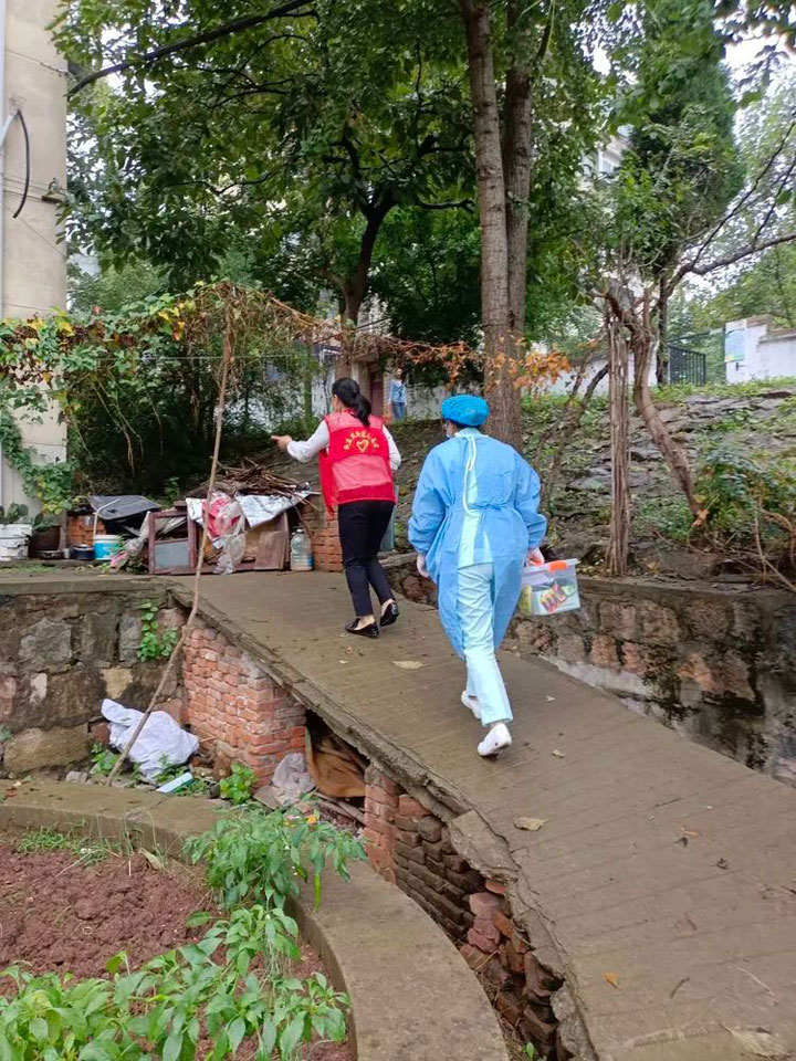 来自各科室的党员医护骨干和社区工作者早出晚归,风雨无阻,密切配合,热情服务。爬山坡、翻铁路、进楼道,到八公山区各个社区村落,挨家挨户进行宣传动员,为高龄体弱行动不便的老人和残疾人提供疫苗接种服务。