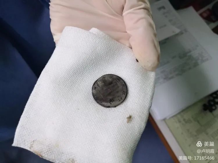 由于胃酸长时间的腐蚀,这枚硬币已经变成了黑色。受到硬币的刺激,患儿的胃窦岀现水肿、溃疡。需到儿科病房住院观察治疗几天。