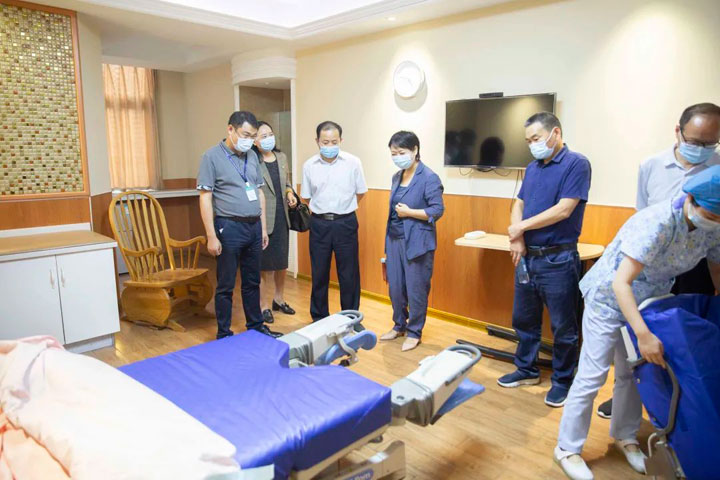 最后,江永强董事长带领各位领导参观了东方旭日母子中心。一进门,各位领导就被家庭化产房里优美的环境所吸引。江董事长介绍,家化产房的装修风格是青春活泼的,但温馨是它的本质。病床也是产床,产妇生产之后直接就在这个床上休息,家人还可以在一旁陪伴,对产妇的身体、心理都是很好的安抚。李校长一行表示,旭日母子中心真的是把专业的技术、温馨的环境、温情的服务做到真正的有机结合,妇产专业的学生应该到这样的地方来学习实训,才能得到进步。