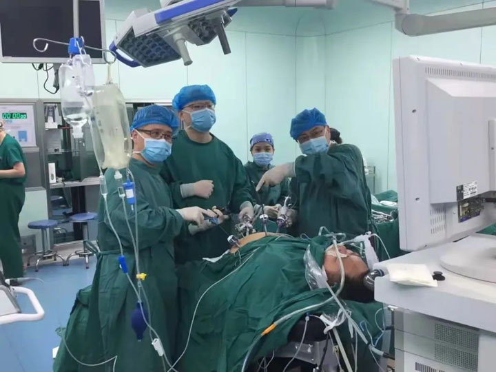 “通过四五个几厘米的腹壁小切口将水袋装的胃变成细长的香蕉状,切除近8成胃体积,其中包括胃底和胃体大部分的分泌细胞,不仅降低了食量,还会减少刺激食欲的荷尔蒙Ghrelin分泌量,降低饥饿素分泌,从而减少患者的饥饿感。就是我们说‘腹腔镜下袖状胃切除术'。“曹辉主任介绍道,“在整个减重团队的协作下,术后两年内约可减去10-15个BMI或七成多余的体重。对于那些BMI较高或者(超过40)而又难以减低食量的人来说,可以达到非常理想的减重效果。减重不是简单的为了形体美,最重要的是带给患者健康。”