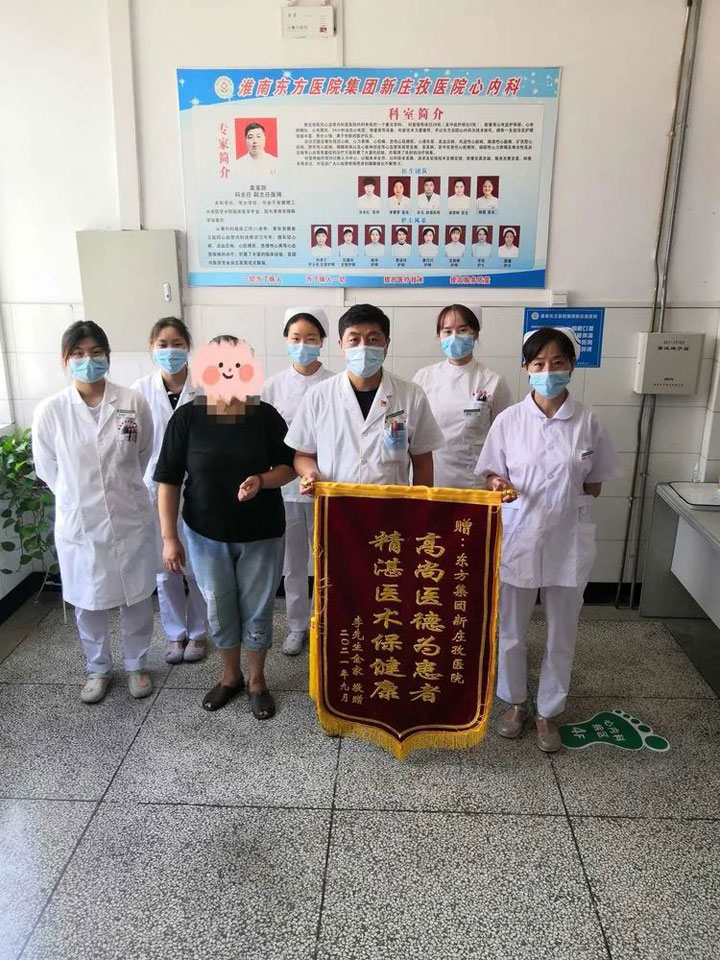“心内科的主任和医生不仅医术高,工作都非常认真负责,护士们也是特别有耐心,真是太感谢你们了!”2021年9月8日上午,患者朱奶奶家属将一面写有“高尚医德为患者,精湛医术保健康”的锦旗送到新庄孜医院心内科袁家跃主任及全体医护人员手中,并衷心地感谢住院期间医护人员的精心治疗和舒心照顾。