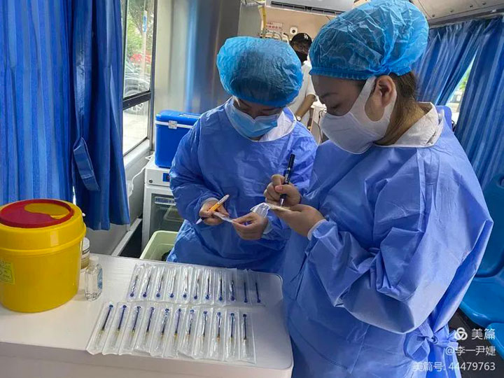 每一针新冠疫苗接种背后都有看不见的工作。深夜接苗,周末随时待命。穿着隔离衣,戴着口罩、帽子、手套,从早上7点开始,李郢孜医院疫苗接种小组就开始了一天的接种工作。“有时候一天安排下来接种疫苗大概是八百多针,我们两个组打,每一个组的话三四百针。”
