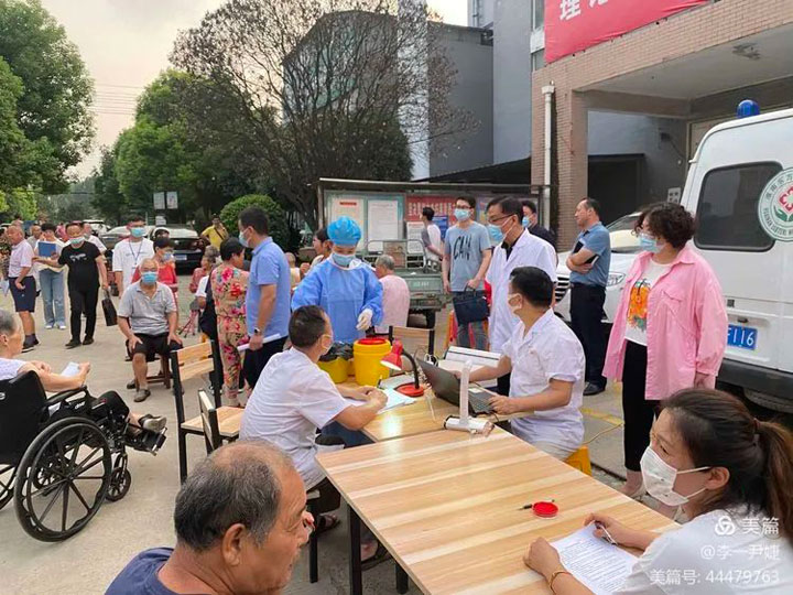 另一支志愿队伍检验科曹靖主任带着爱人朱杰放弃周末和晚上休息时间,深入到李郢孜镇各个街道,扎实细致开展“敲门行动”,逐户逐人联系,讲解疫苗接种政策,切实提升群众接种意愿。上门为群众开展最优质的疫苗接种服务。采取“线上”“线下”等方式,利用微信发布信息,赢得了广大群众的赞誉和支持。截至目前,上门入户接种368剂次,接种第一针后努力实现到期李郢孜镇群众接种全覆盖。