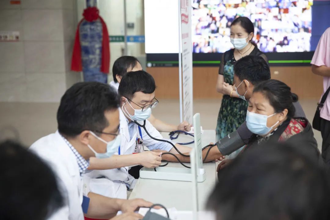 活动现场,前来咨询及接受义诊的群众络绎不绝,淮南东方医院集团总医院副院长朱胜,总院副院长兼集团心内科医疗中心主任李枫,集团影像中心主任陈忠,集团心电云中心主任冯湘红,总院超声诊断科主任翟哲,总院内一党支部书记任梅、廖红光,及总院心内科主任汪蛟龙、王其虎,主治医师张樊、宁伟,住院医师熊堂鹏、张旺、赵明亮等人员在现场耐心细致的为每一位群众问诊,解答健康疑问,医护人员还免费为群众测量血压,发放“2021年9月29日世界心脏日”健康宣传材料。