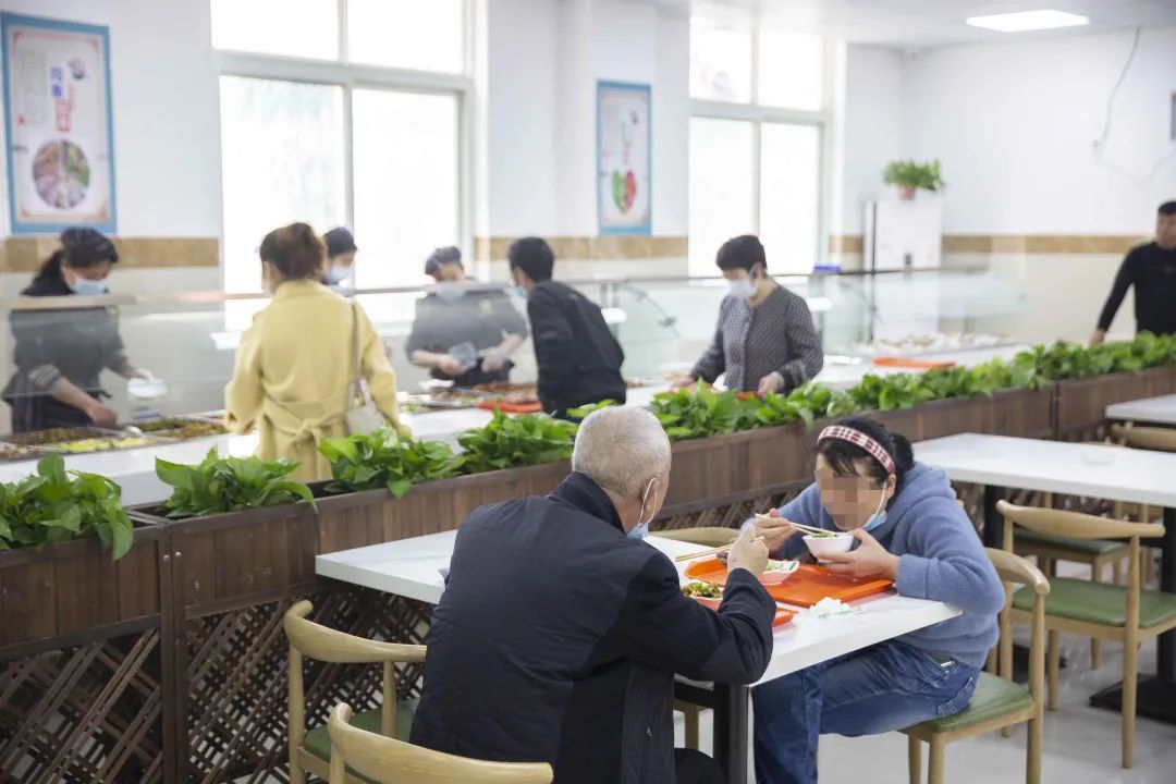 装修一新的食堂餐厅整洁温馨,典雅大方。餐厅内方形餐桌椅整齐有序,环境宽敞明净,前厅后厨的条件都有了极大的提升,不仅更加干净整洁,饭食品种也更加丰富。食堂分为套餐区与单点菜区,30多种菜品荤素搭配,可供就餐者自由选择。“喜欢吃什么就拿什么,热菜、热饭、热汤,吃得心里暖呼呼的。”老伴在内分泌科住院的陈奶奶说:“孩子都在外地,自己家离医院也很远,给家属做饭很不方便,在这里吃得方便、吃得好,老伴儿心情也更舒畅了。”