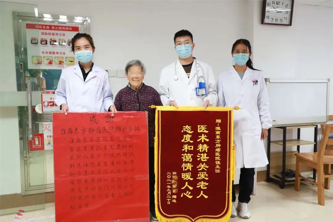 接诊完善检查后,肺癌中心医生组根据老人病情,讨论后决定为他实施放、化疗加辅助治疗方案。由于老人病情尚处在中期初期阶段,短短一个多月,老人病情就得到较好地控制,不仅吃饭香了,精神也好了许多。这期间,管床医生饶鹏飞查房时经常会安慰老人,“老爷子,多吃点,这样才有力气。精神好了,病好了,就能回家了。”医生不断地宽慰和护士们每日的精心护理,使老人身心得到极大放松。出院时,老俩口对肺癌中心的医护人员再三表示了感谢。