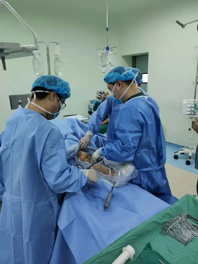 患者李某是外科的“老熟人”,此前曾因胆囊手术在外科住院治疗过,对外科的技术和服务都非常满意。不久前,李某腿部长出一个肿块,一开始他并未在意,但随着肿块的不断增大,很快就变得鸡蛋大小,疼痛愈发明显,行动也受到限制。忐忑不安中,李某毫不犹豫地选择再次来到外科就诊。经过详细检查,张利主任判断李某腿部肿块极有可能是良性肿瘤,在臧诗庆医生协助下,顺利为其实施了手术。术后病理提示为良性。解除了“警报”的李某万分感激,于是专程送来了一面“医德高尚、医术精湛,服务热情、护理精心”的锦旗。