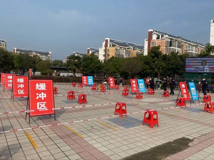 演练现场设置了测温区、缓冲区、等候区、采集区、留观区、临时隔离区、医废处置区、消杀区等区域,每个区域都做有明显的标识,方便居民按照指示牌快速到达相应的区域。由谢家集区卫健委、疾控中心、李郢孜医院、李郢孜派出所、社区等部门成员联合组成工作组,引导核酸检测人员有序进行核酸采集。