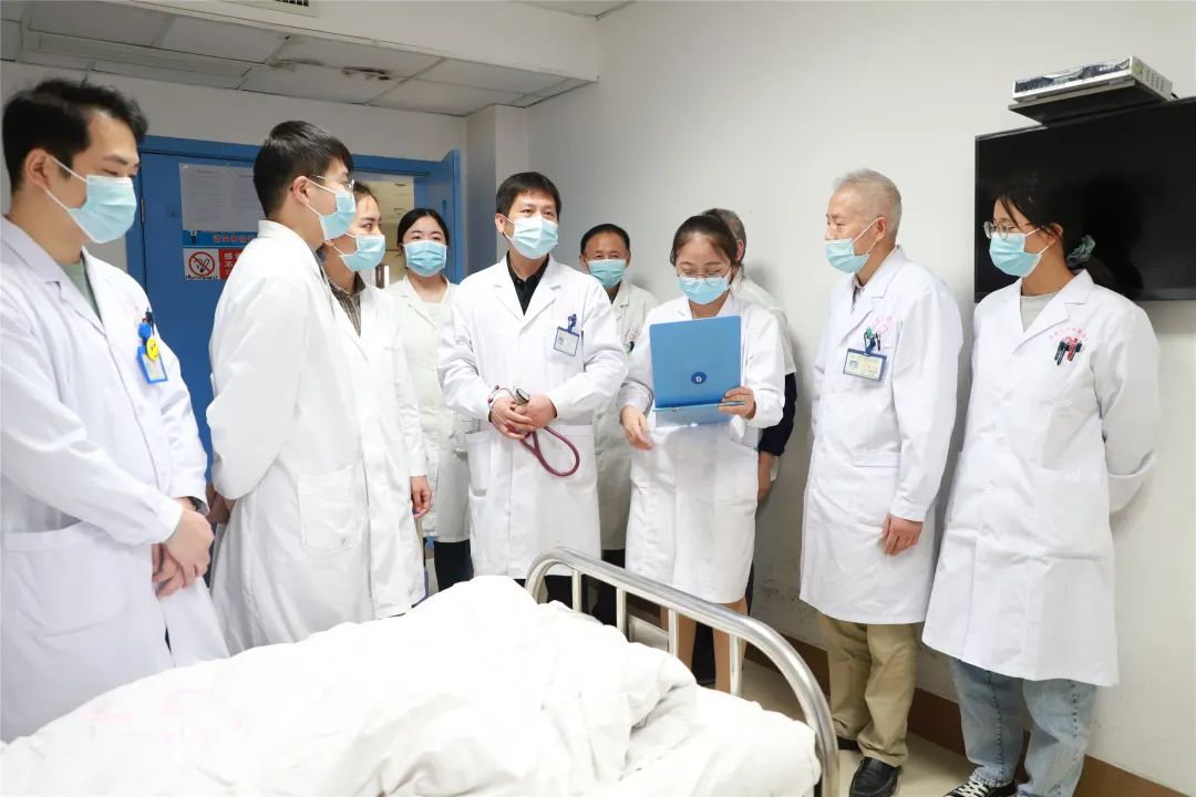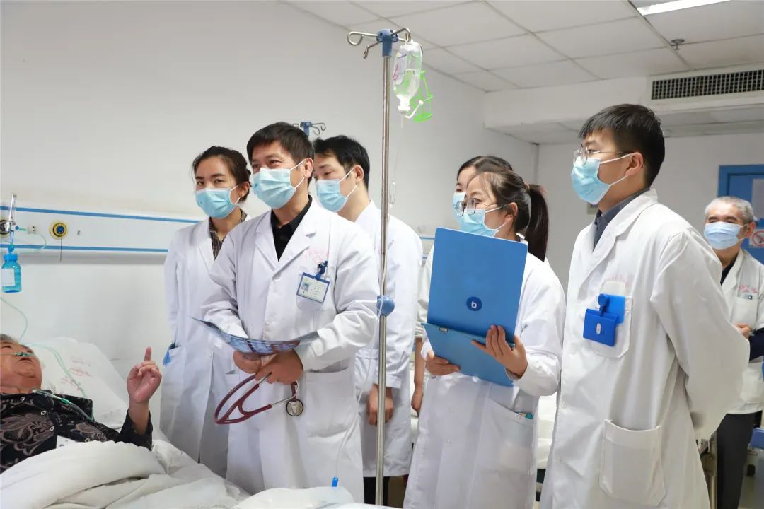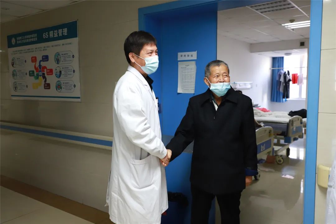 为确保万无一失,副院长谢军邀请安徽省胸科医院唐飞教授会诊共同施行支架置入术。患者90多岁高龄,且有比较严重脊柱畸形,只能端坐呼吸,必须要全麻下行手术,这对麻醉科也是一个艰难的挑战。术中,CT上可见气管狭窄到仅有一点缝隙,几乎完全堵死,专家迅速运用支架撑开了狭窄的气管……在多科室奋力协助、多位医生全力配合下,经一个小时的努力,支架顺利置入,当喊醒了熟睡的老爷子,大家悬着的心才得放下,老爷子的气促症状明显缓解,血氧饱和度维持在99%。谢军介绍,通过进一步进行治疗,患者一般情况还可以得到改善。还能为下一步食管肿瘤放疗争取机会,但是如此高龄的患者,情况如此严重,这次两地医生通力合作,患者九死一生,实属不易。术后,老爷子恢复较快,谢副院长查房时,老爷子气息顺畅地握住他的手说:“谢院长啊,我是从阎王爷那里被你拉回来的,你是我的救命恩人!我活了这么大年纪,老了还能碰到你这样的好医生,是咱们的缘分,也是我的幸运呐!”