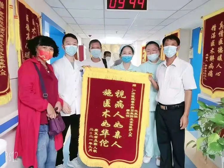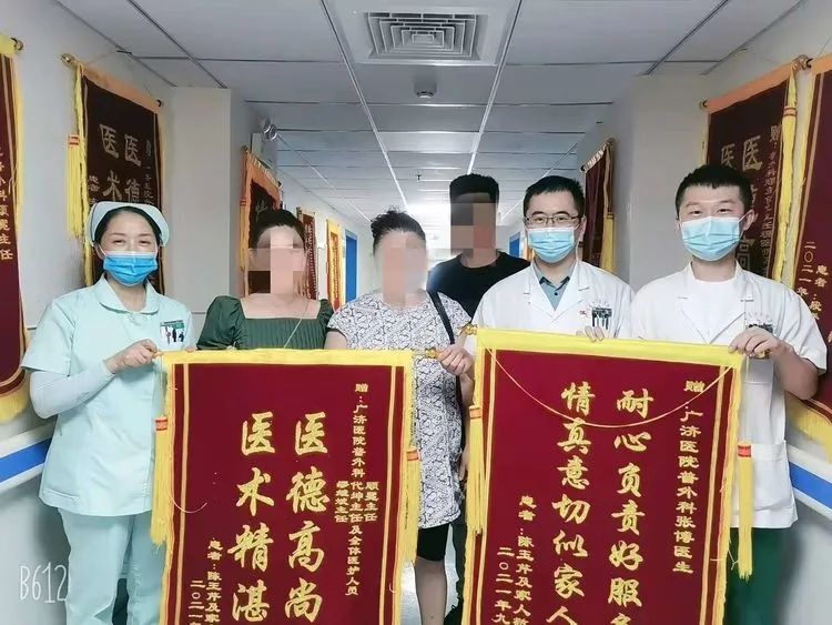 “谢谢主任们,也谢谢张医生。”康复出院的郑女士(化名)家属带着两面锦旗来到科室,“医德高尚、医术精湛”是对广济普外科技艺精湛除恶疾的感激,“耐心负责好服务、情真意切似家人”是对年轻医生关怀患者的赞扬。