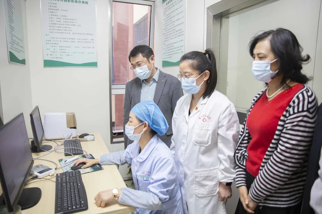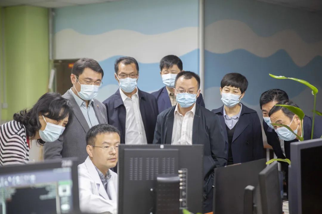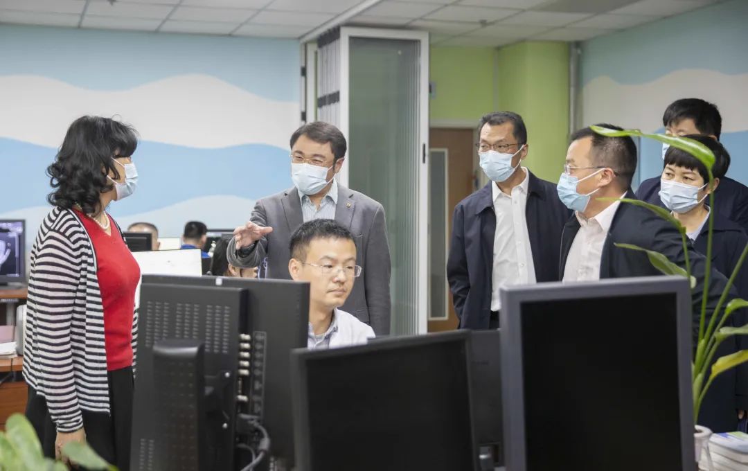 随后,各位领导来到集团云影像中心,这里专家云集。他们接收到各基层医院上传的检查影像,进行集中阅片分析,再将最专业精确的检验报告回传至基层医院。这种集团中心化管理,促进了技术和服务的同质化、标准化、规范化,全面提升了集团尤其是基层医院诊疗服务水平,满足了基层人民群众多样化的医疗卫生服务需求,也保证了集团各医院的协同发展、共同进步。