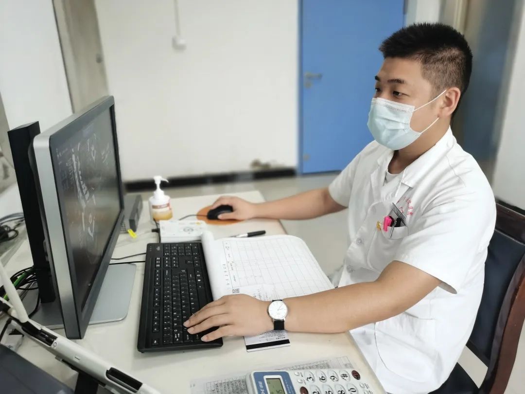 一份仁者医心的情怀背后是技艺精湛的医术,是恪尽职守的使命感和责任感。顾琨倾心服务患者,每一次值班,他总是提早开机,延时下班,对有疑问的诊断结果,立即和集团总院影像科电话联系,力求得到准确的诊断。老年人大多听力下降,他不仅仔细听家属讲解病情,而且主动询问患者病史,获取详细的有价值的病史资料。九月份,有一个九旬老人在家人的搀扶下来拍片,因为耳背,行动迟缓,顾琨不厌其烦地为老人摆体位,亲自搀扶老人,既要保证摄片要求的合适体位,又要保证老人的舒适和避免受到伤害。老人看着顾琨额头开始流汗了,笑着说“你是一位年轻的好医生,有医德,不嫌我们耳朵背、听不见,也不嫌我们动作慢耽误你时间。”