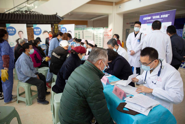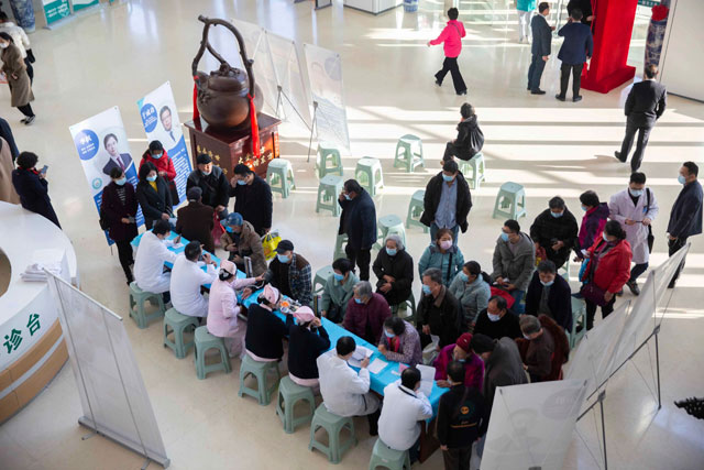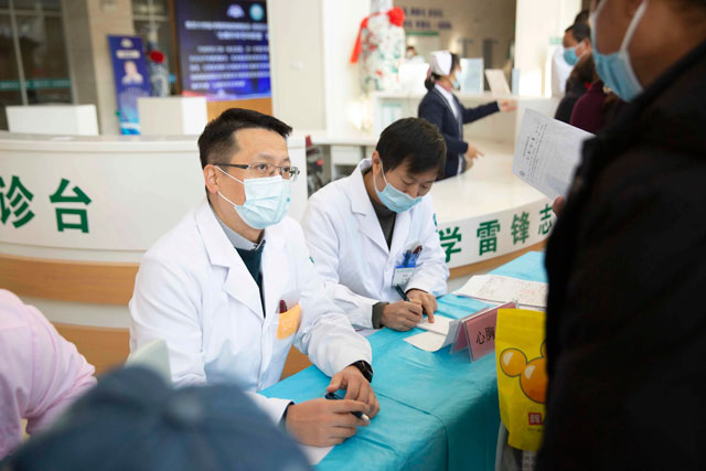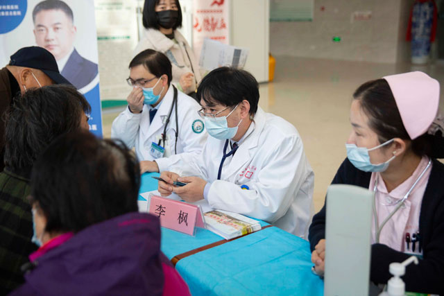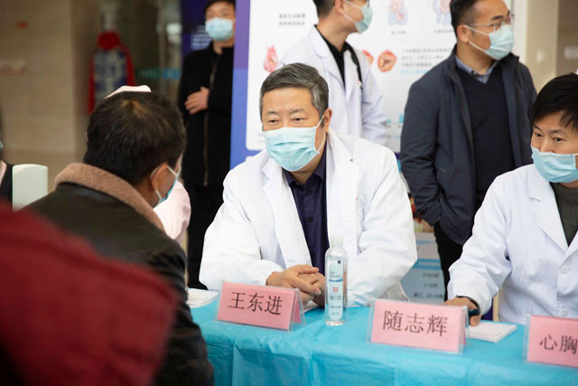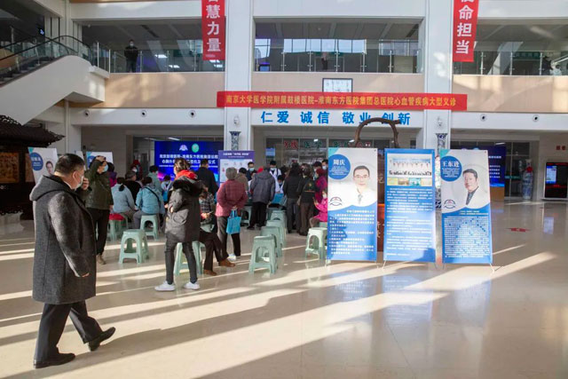 为服务淮南百姓,在仪式开始前,南京鼓楼医院和东方总院首先组织各科室专家开展心血管疾病大型义诊活动。在义诊现场,前来参与的群众络绎不绝,王东进教授、周庆教授亲自坐诊,与东方总院心内、心外科团队一起为来往的患者们提供免费咨询和问诊服务,帮助患者了解自己心脏的健康状况,同时护理团队免费为患者测量血糖、血压和心电图,对于需要进一步检查的患者,南京鼓楼医院超声诊断科和心功能室行政主任孙步高还为他们进行免费的心脏彩超检查。义诊活动持续近2个小时,共为100多名患者提供了专业的医疗服务与指导。