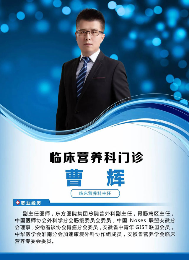 为满足人民群众的健康需求,充分利用医院丰富的资源和优质的专业服务能力,立足健康药材和食材资源优势,东方总院临床营养科门诊正式开诊,主要进行营养咨询评估及指导、住院患者营养风险筛查、营养会诊、出具肠内肠外营养配方,肠内营养液配制等工作。科室目前共5人,科主任1名,营养医师2名,营养技师2名。
