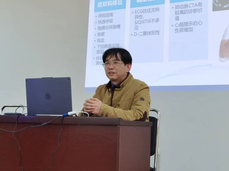 在热烈的掌声中,李枫院长从胸痛的定义开始,通过经典的案例分析,有条不紊的讲述了急诊常见胸痛病因、诊治中存在的主要问题。如何快速识别急性胸痛患者,有的放矢地做好急性胸痛的诊疗,既能及时剔除低危患者,避免盲目住院,降低医疗费用;又能正确筛选可能危及生命的高危患者,改善预后。李院长结合课件,引经据典,对主动脉夹层、肺栓塞、气胸等各种相关疾病的鉴别诊断,以及胸痛的发病年龄、部位、疼痛性质、持续时间、发病诱因及缓解因素、伴随症状,分别进行了详细的讲解。丰富的课件,精彩的案例,详实的内容在李院长的生动讲解下,条理清晰引人入胜,年轻医护们听得津津有味,默默的做好笔记。