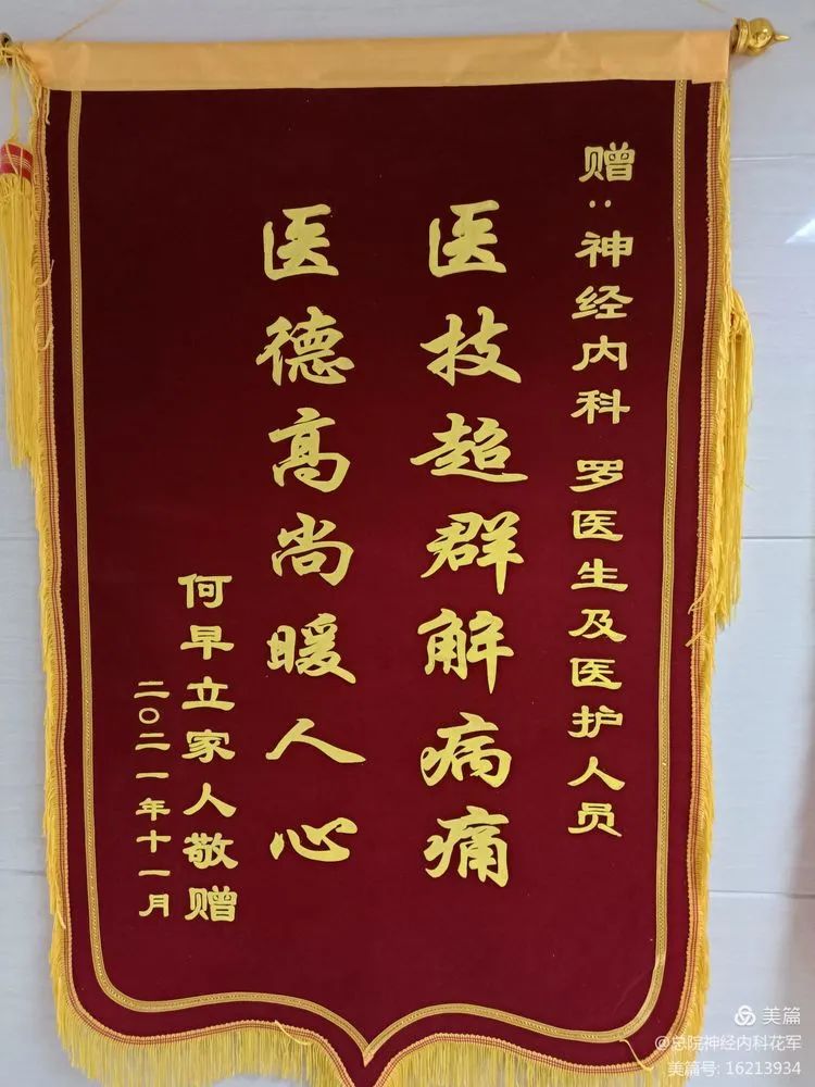 为了感谢罗医生,刘师傅委托家人特意制作了一面锦旗送到神经内科,就这样才有了文章开始的温馨情景!