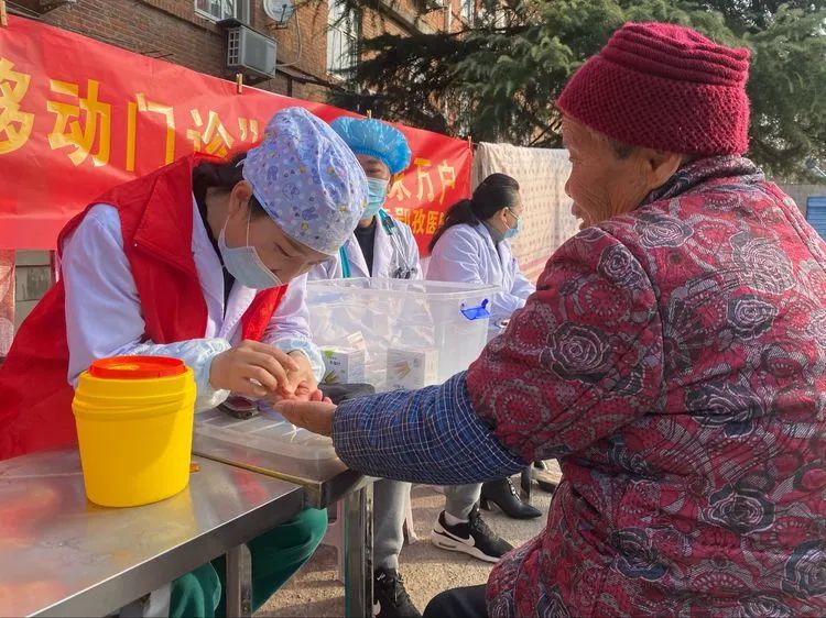 “想着你们,你们就来了”。一位老奶奶拄着拐杖走过来亲切的说着。“奶奶你的血糖是餐后5.3,血糖正常,血压有点高,降压药要按时吃,不能自己随便停药,我们会经常过来给您量血压,有不舒服的就及时跟医生说”。党员杨静认真的跟老人说着。一位搀扶着老人的阿姨来到了义诊现场,这位阿姨激动的说:“你们医院是真干实事,走到哪都能看到你们的移动门诊,上次在我家楼下,还今天你们又来到这,真是好”。另一位老人的家属说:“我知道你们的移动门诊,老百姓哪需要你们就移动到哪,上街买个菜都能检查检查,今天好,我家门口坐着,你们就来了,给你们点赞”。话音刚落,就引得现场笑声一片,场面温馨融洽。
