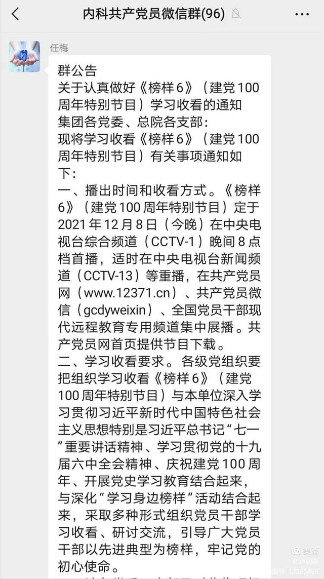 为充分发挥先进典型示范引领作用,大力宣传“七一勋章”获得者和全国“两优一先”表彰对象的典型事迹,教育引导各级党组织和党员干部学习榜样、争做榜样,在全党全社会营造崇尚先进、见贤思齐的浓厚氛围,中共中央组织部、中央广播电视总台联合录制了《榜样6》(建党100周年特别节目)。12月8日晚,东方总院内科支部的共产党员通过电视、网络直播观看了《榜样6》。