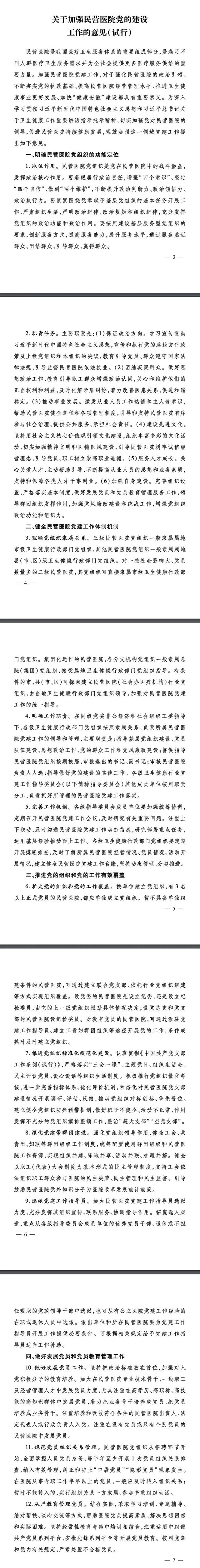 为加强民营医院党建工作,强化民营医院的政治引领、不断夯实党的执政基础、提高民营医院经营管理水平、推进卫生健康事业更好发展、加快“健康安徽”建设,中国共产党安徽省卫生健康委员会党组印发了《关于加强民营医院党的建设工作的意见(试行)》的通知,请医院集团全体党员做到认真领悟精神,加强政治学习,将文件精神落实到工作中的方方面面。