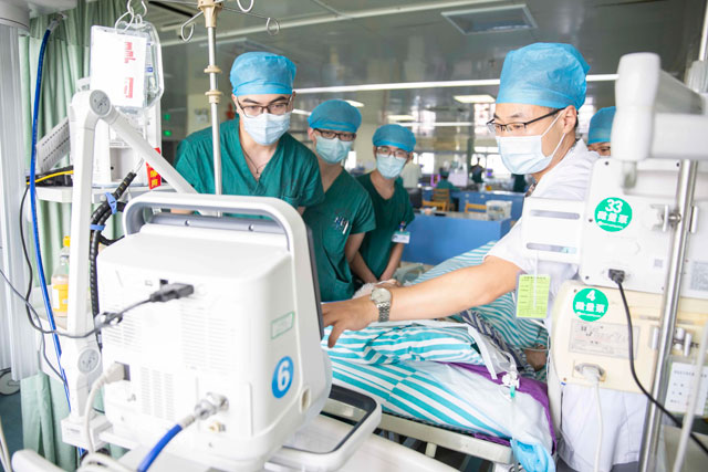 11月下旬的一天,一名昏迷中的患者被紧急送来东方总院急诊,家人忧心如焚。原来,刚届不惑之年的曹某患有尿毒症性肺病,两天前在无明显诱因下出现呼吸困难,当时未予重视,第二天症状加重,人也陷入昏迷遂紧急就医。总院检查发现,患者由尿毒症性肺病导致心衰,查肌酐达1009umol/l,高出正常人一百多倍,同时肺部有淤血和毛玻璃样改变。医护人员立即予以持续血液滤过治疗,时时密切观察,但次日凌晨各项指标显示患者昏迷症状加重,难以自主呼吸,为维持正常呼吸和避免呼吸道压迫堵塞,医护人员第一时间给予呼吸机辅助。之后的几天,都在医护人员精心观察护理和病人家属的坐立不安中度过。医生护士们一边采取器官支持、肾脏替代等治疗,一边安慰家属,给她们分析病情和治疗方法以减轻压力。6天后,患者苏醒, 成功拔出了气管插管,睁开眼的那一刻,家人百感交集,忍不住喉头哽咽……