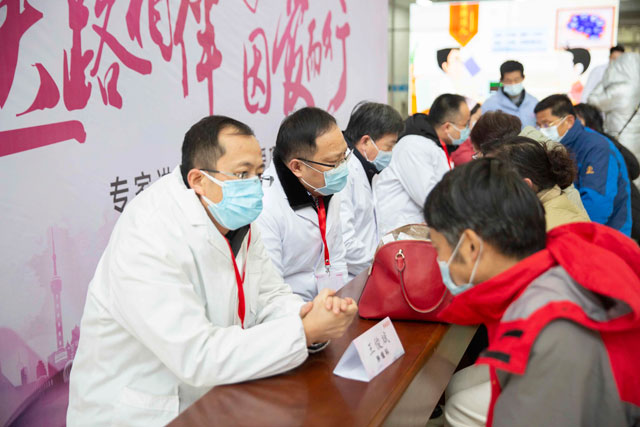 会后,专家团队来到东方总院门诊大厅开展义诊活动,来自肿瘤科、胸外科、呼吸科等科室的专家们为来往的群众提供免费咨询和问诊服务,帮助患者了解自身的健康状况,同时为部分患者梳理诊治过程、给出治疗意见,帮助他们规范和完善治疗方案。