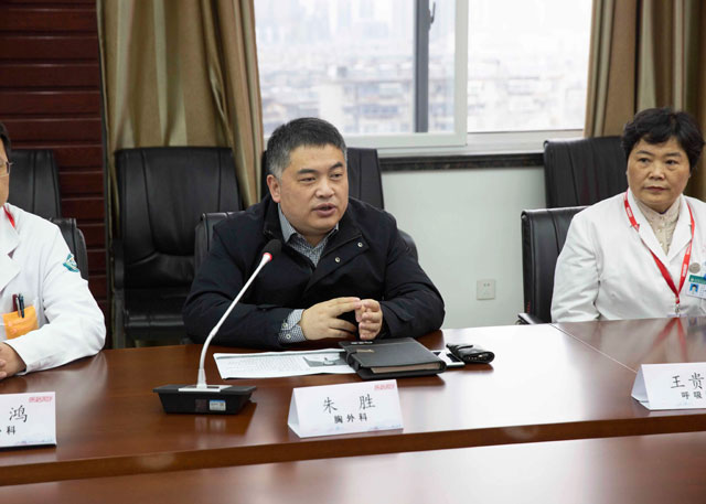 中国科大附一院、安徽省立医院呼吸与危重症科主任操乐杰教授,蚌埠医学院第一附属医院胸外科主任王安生教授,蚌医一附院肿内六病区副主任王俊斌教授,蚌埠医学院第一附属医院肿瘤放疗病区副主任李红伟教授,以及东方医院集团胸心外科医疗中心、呼吸内科医疗中心和肿瘤科组成的医疗团队出席了项目启动会,淮南东方医院集团总医院副院长朱胜主持启动会。