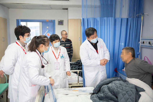 义诊结束后,四位教授走进东方总院呼吸内科、胸心外科和肿瘤科,进行了专家查房、病例讨论和学术交流。在呼吸内科二病区,针对疑难病例,操乐杰教授查看了患者的恢复情况,结合病史及目前的治疗方案和治疗情况,对观察要点进行了详细分析,为患者及时调整了最新的治疗方案,以便患者能够获得更好的治疗效果。