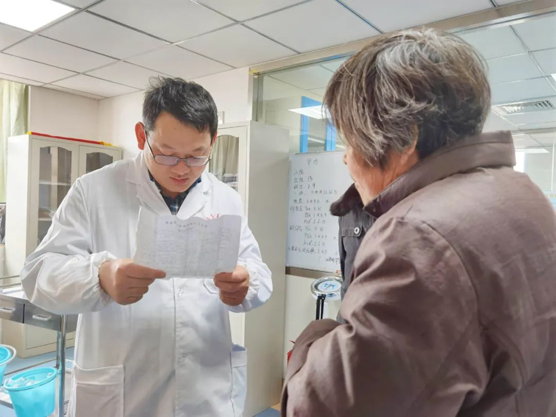 2018年7月,一位来自潘集农村的69岁男性患者周师傅来到集团肾病血液净化中心住院,发病以来患者体重减轻了20余斤。入院检查提示严重酸碱平衡电解质紊乱合并急性肾盂肾炎,身体非常虚弱,血压偏低,常规血液透析治疗风险很大,建议考虑腹膜透析,患者大儿子坚持要求血透。“在积极完善相关检查,稳定内环境、营养支持治疗同时,我们迅速联系血透中心,拟定于入院第3天开始插管血透。”黄金波回忆。但患者病情持续恶化,血压低至60/40mmHg,为常规血液透析禁忌症,7月12日紧急转至ICU科行床边血液滤过治疗5次,病情稍稳定后7月24日再次回到肾内科。但其仍有持续低血压,须持续泵入升压药维持血压,且贫血和尿路感染仍很严重。黄金波耐心地向病人及其子女介绍腹膜透析原理及操作,让其他住院的腹透病人亲自演示,使患者及儿子消除了顾虑,接受了腹膜透析。7月26日下午在持续升压药泵入、吸氧、心电监护保驾护航下,黄金波和王莉仅用40余分钟就完成腹膜透析置管术,术后开始维持性腹膜透析CAPD治疗。经过1个多月的腹透、纠正贫血、抗感染、营养支持等综合治疗,9月3日患者好转后自己走出了病房,出院回家开始了居家透析。现在患者每月定期来医院复诊,还做起了科室的腹膜透析宣传员。