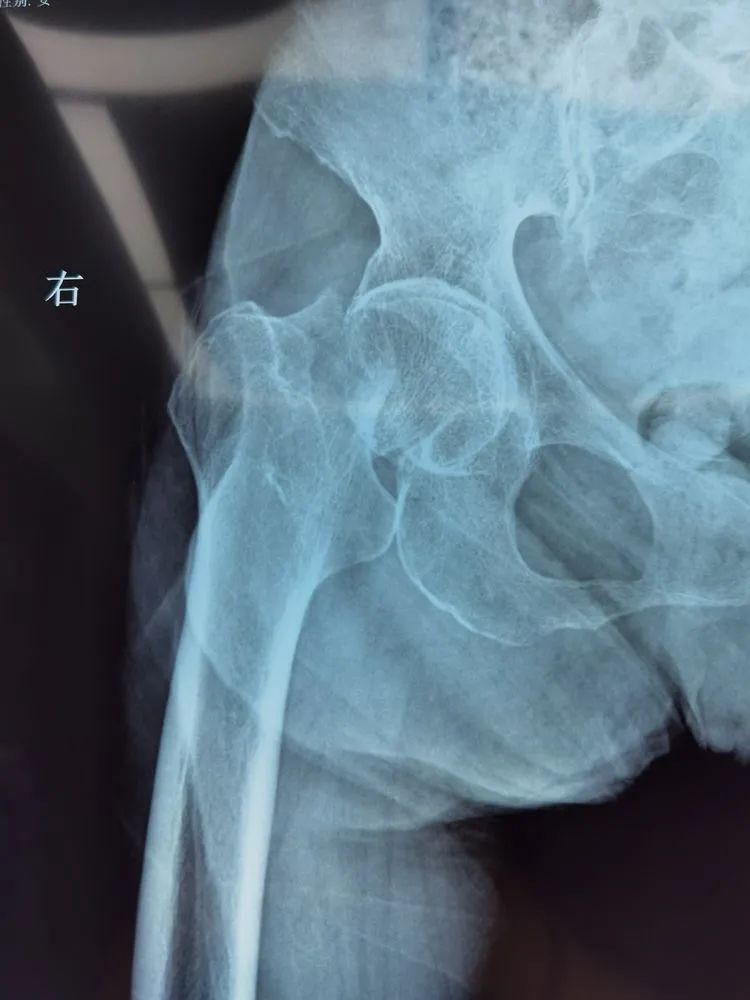 不日前,老人不慎摔伤,剧痛难忍,孝顺的子女们心急如焚,赶紧将老人送往医院。接诊的正是广济医院骨科主任王怀波,老人面色痛苦,家属代为主诉:不慎摔伤致右髋部疼痛伴活动受限,检查后拟诊“右股骨颈骨折”,专科检查:右髋屈曲外旋畸形,稍肿胀,下肢短缩约1.5cm,右腹股沟韧带中点下两横指处压痛明显,轴向叩击痛阳性,影像示:右股骨颈骨质断裂,断端错位,股骨干上移。明确诊断——右股骨颈骨折。