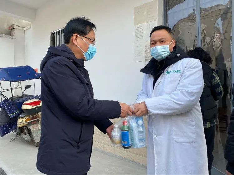 在进行安全检查的同时,余涛院长为每一家卫生室送上一份特殊的“安全礼包”,礼包里有酒精、碘伏、免洗手消毒液、口罩、医用帽,希望各位村医能从自身做起,规范操作,时刻保持严谨的防疫状态,共同做好疫情防控工作。