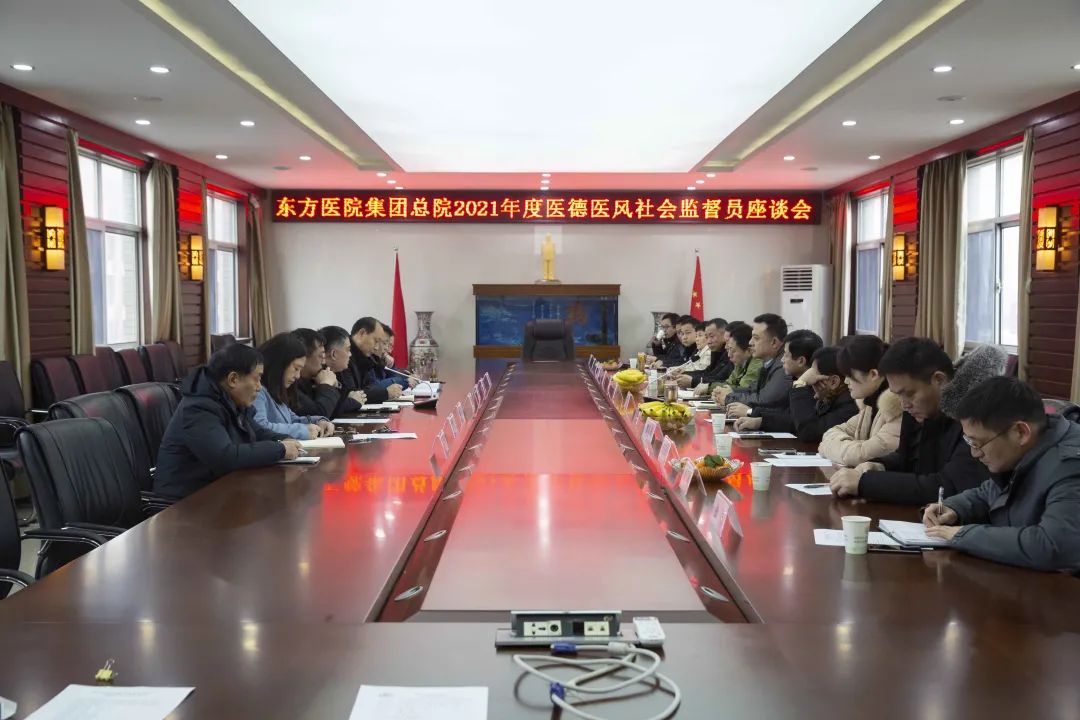 为充分发挥社会监督作用,紧密医院与群众联系,推动医院行风建设,牢固树立“以病人为中心”的服务理念,2022年1月25日,淮南东方医院集团总院召开了2021年度医德医风社会监督员座谈会。集团董事、总院副院长朱胜、集团纪委书记陆宝、总院纪委书记杨策、总院副总经济师孙正以及纪检监察室负责人等参加了会议。