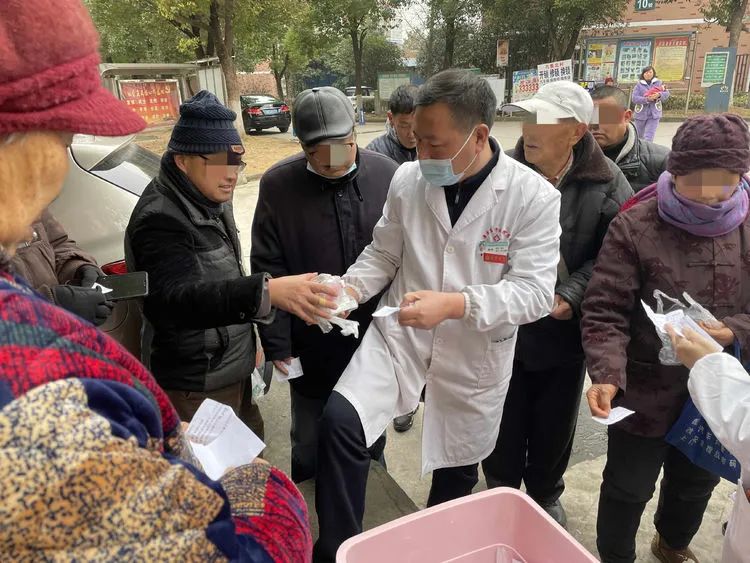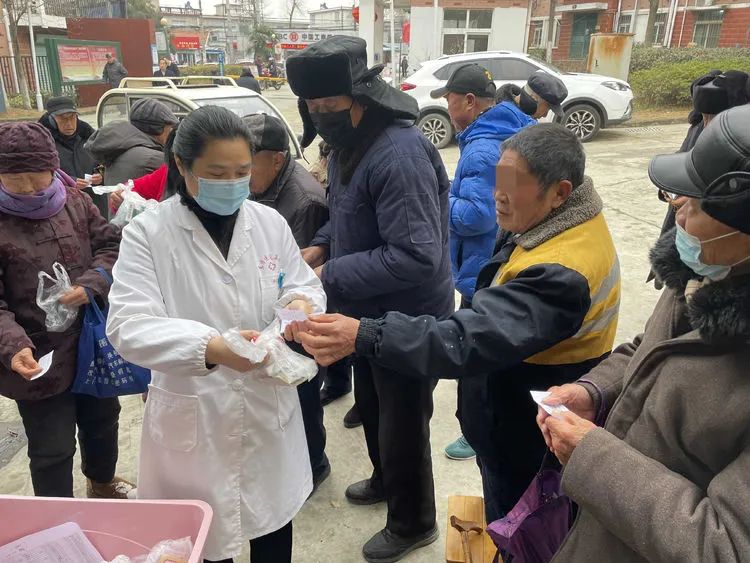1月27日下午3点,出入院管理科姚军科长、药械科徐红科长一行将分装好的药品再送到孔集社区,交到患者手里。
