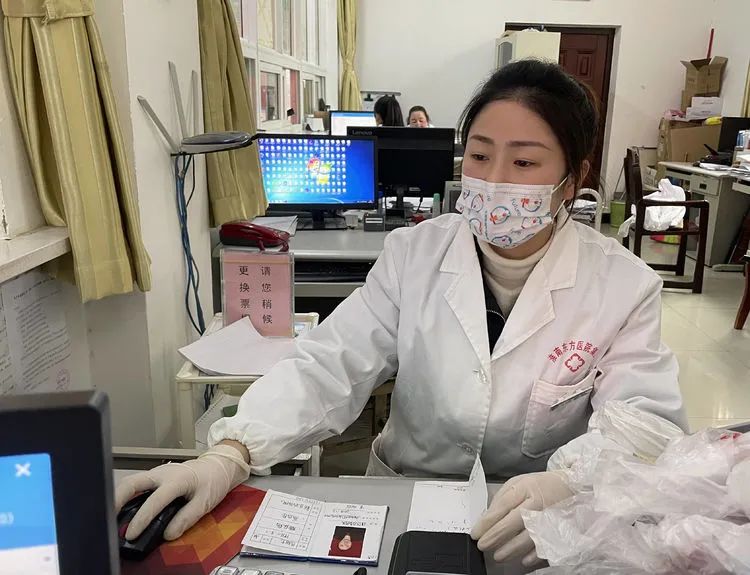 送医送药小分队将医保卡、处方单等收集整理好,交给出入院管理科进行刷卡缴费等,刷卡完成后交到药房,按照单据拿药。