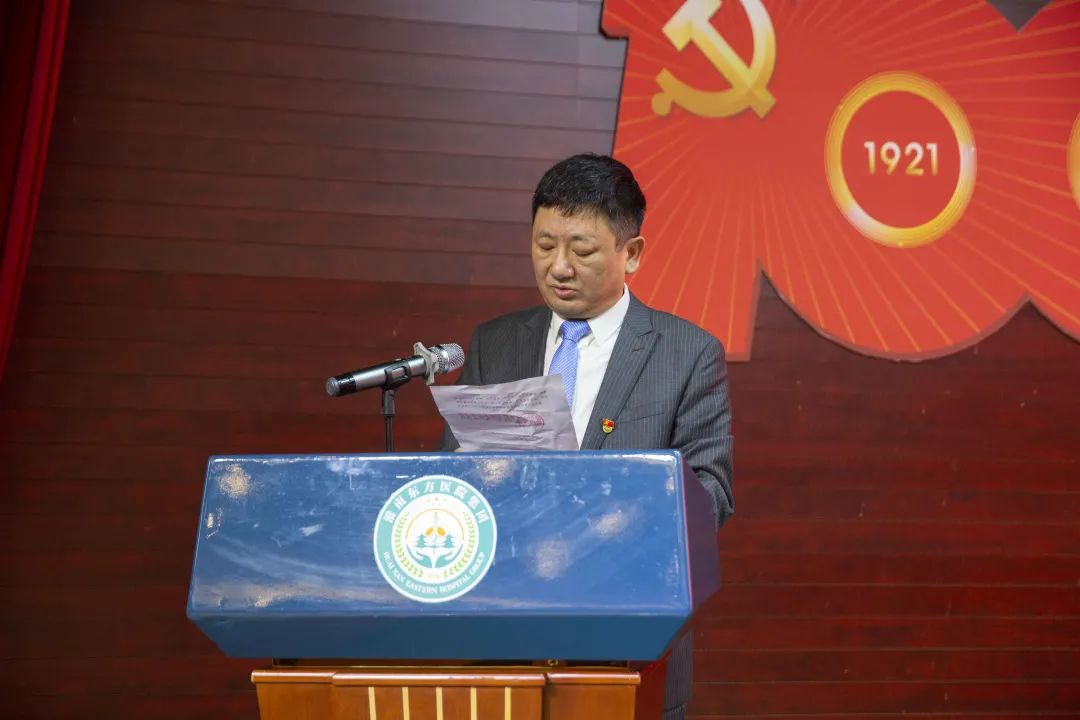 集团董事、肿瘤医院院长胡继年同志宣读《关于表彰2021年度医德医风先进个人的决定》。