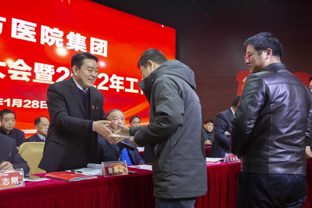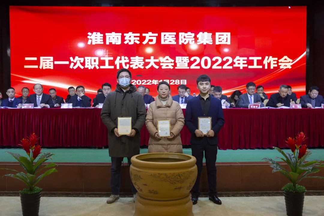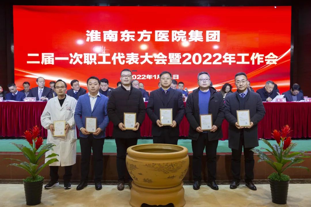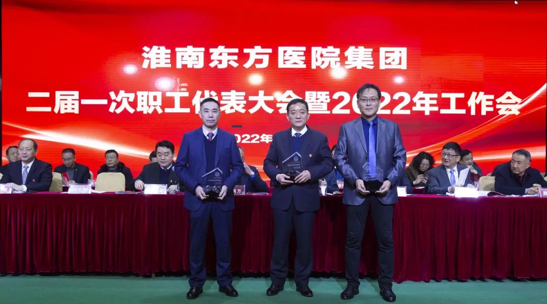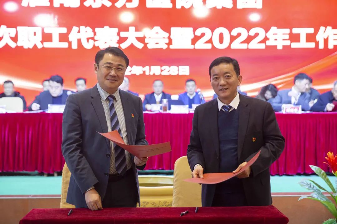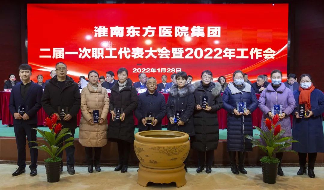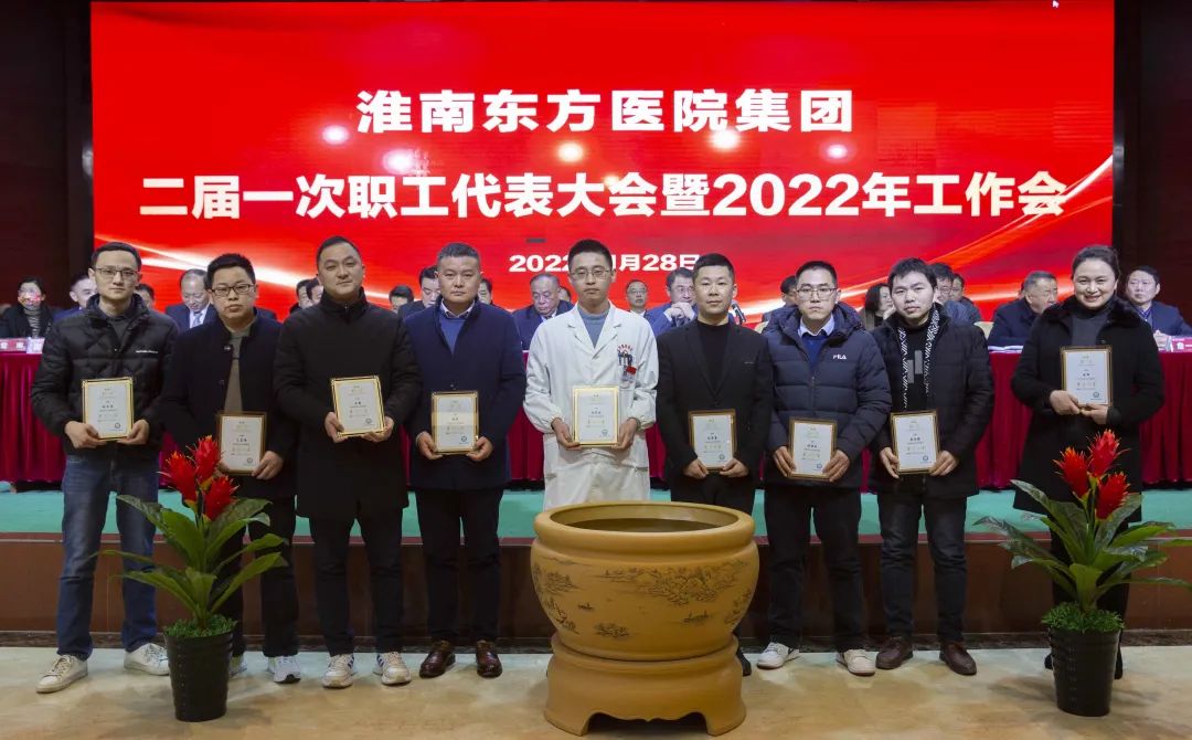 江永强董事长首先代表集团作党委和董事会工作报告。2021年,医院集团在疫情和医保支付改革的双重冲击下,全体东方人守望相助,执着坚守,交出了一份令人满意的东方答卷。这一年,集团领导班子顺利完成新老交替,实现平稳过渡,集团整体运营健康、有序、稳定,先后办成了一批要事、干好了一批大事、解决了一批难事、促成了一批喜事,实现了稳步向前发展。回顾2021,医院集团通过职级改革树目标、立方向、定标准,加强中层考核,强化责任担当,选拔出一批想干事、能干事、干成事的优秀人才,为集团高质量发展、提升核心竞争力奠定了坚实基础;通过推动财务、药事、医保、信息等部门集团化管理,上下一盘棋,发挥出显著作用;通过病区整合,优化人力资源配置,提高了运行效率,促进了服务提升;通过加强行政和财务管理,强化统一招标、议价对比、体量压价等方式发挥集团独特优势,开源节流取得显著成效;通过关爱职工、坚持米油文化、普涨工资,充分保障了员工利益,实现了员工人均年收入同比较大幅度增长。2021年,集团坚持技术创新、服务创新、靠前服务,让市民“足不出淮”就享受到真正高水平的诊疗服务,一系列便民惠民举措赢得政府信任、百姓称赞。集团以“5G+智慧医疗”战略合作项目为契机,全面升级医院信息化系统,实现数据互联互通,“整体上云”。充分发挥安徽理工大学附属医院等平台优势,科研、教学工作取得重大突破,获得诸多荣誉。医院集团坚持党建引领,扎实开展党史学习教育,深入开展“我为群众办实事”实践活动,推进党建与医疗工作深度融合,努力打造社会组织党建工作标杆,为医院集团发展提供了坚强的政治保证。多措并举下,集团发展展现了强劲动力和生命力,国家卫健委及省、市领导多次莅临医院视察指导,对医院创新管理、疫情防控、预防接种等工作给予充分肯定;医院集团连续多年在“中国医院竞争力排行榜”中名列前茅,总院、肿瘤医院、凤凰医院也同时登榜,充分彰显了医院集团在全国的竞争力和影响力;集团在安徽省紧密型城市医联体建设暨城市卫生工作现场会上的经验分享,受到省卫健委领导多次表扬,以及省内同行的一致认可,社会影响力空前提升。