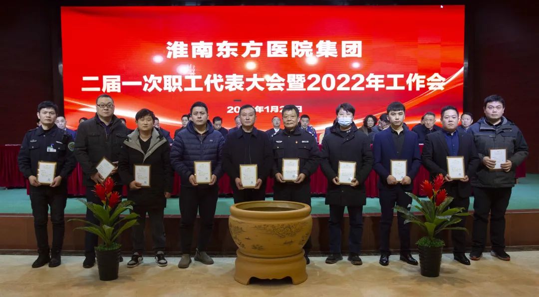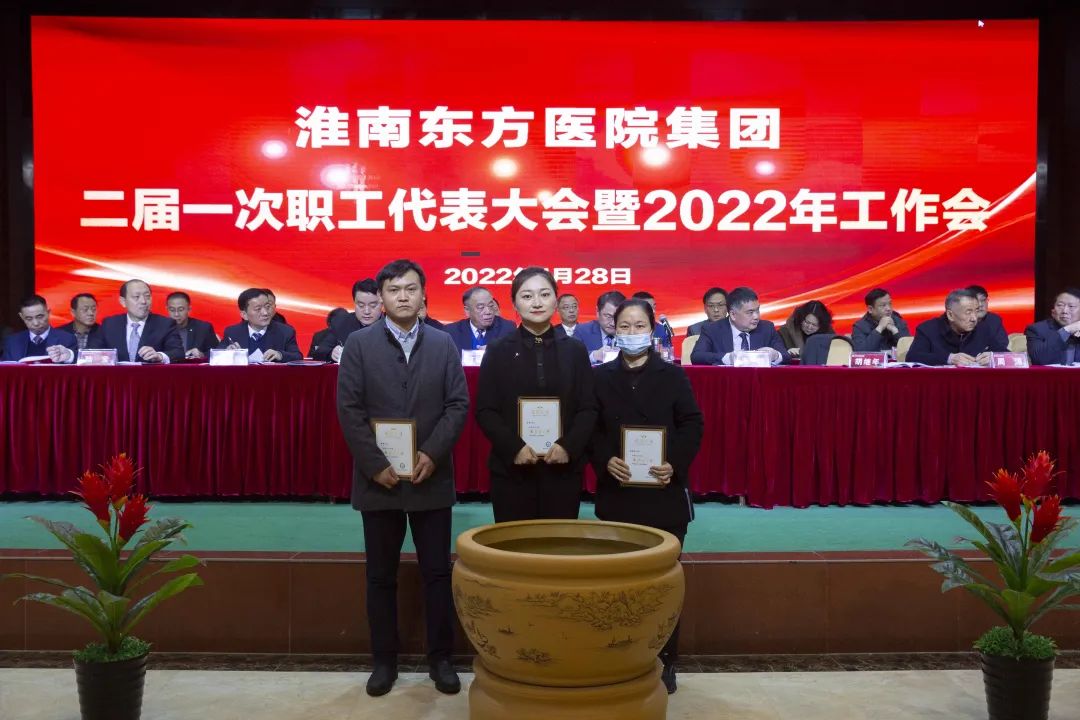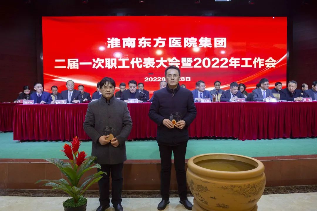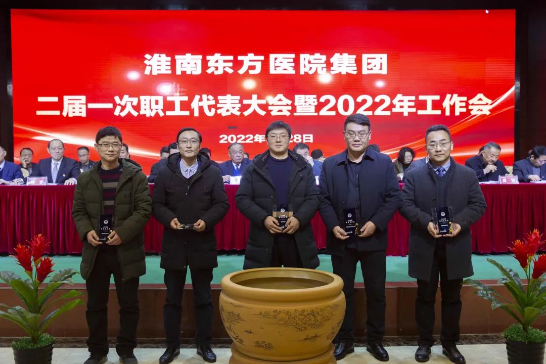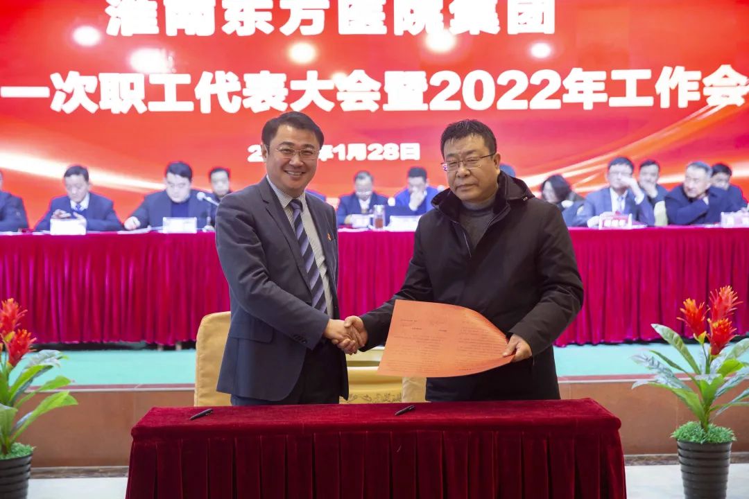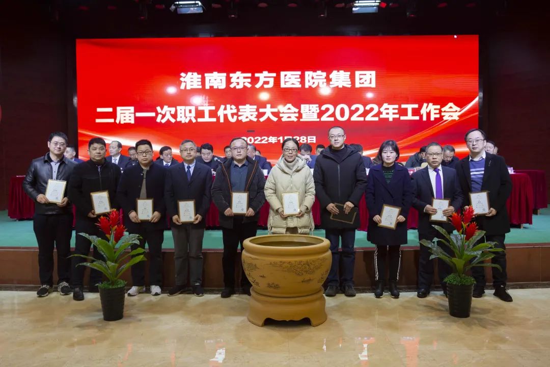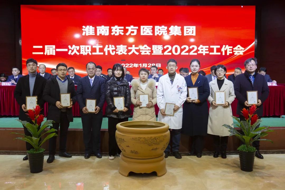 江永强董事长首先代表集团作党委和董事会工作报告。2021年,医院集团在疫情和医保支付改革的双重冲击下,全体东方人守望相助,执着坚守,交出了一份令人满意的东方答卷。这一年,集团领导班子顺利完成新老交替,实现平稳过渡,集团整体运营健康、有序、稳定,先后办成了一批要事、干好了一批大事、解决了一批难事、促成了一批喜事,实现了稳步向前发展。回顾2021,医院集团通过职级改革树目标、立方向、定标准,加强中层考核,强化责任担当,选拔出一批想干事、能干事、干成事的优秀人才,为集团高质量发展、提升核心竞争力奠定了坚实基础;通过推动财务、药事、医保、信息等部门集团化管理,上下一盘棋,发挥出显著作用;通过病区整合,优化人力资源配置,提高了运行效率,促进了服务提升;通过加强行政和财务管理,强化统一招标、议价对比、体量压价等方式发挥集团独特优势,开源节流取得显著成效;通过关爱职工、坚持米油文化、普涨工资,充分保障了员工利益,实现了员工人均年收入同比较大幅度增长。2021年,集团坚持技术创新、服务创新、靠前服务,让市民“足不出淮”就享受到真正高水平的诊疗服务,一系列便民惠民举措赢得政府信任、百姓称赞。集团以“5G+智慧医疗”战略合作项目为契机,全面升级医院信息化系统,实现数据互联互通,“整体上云”。充分发挥安徽理工大学附属医院等平台优势,科研、教学工作取得重大突破,获得诸多荣誉。医院集团坚持党建引领,扎实开展党史学习教育,深入开展“我为群众办实事”实践活动,推进党建与医疗工作深度融合,努力打造社会组织党建工作标杆,为医院集团发展提供了坚强的政治保证。多措并举下,集团发展展现了强劲动力和生命力,国家卫健委及省、市领导多次莅临医院视察指导,对医院创新管理、疫情防控、预防接种等工作给予充分肯定;医院集团连续多年在“中国医院竞争力排行榜”中名列前茅,总院、肿瘤医院、凤凰医院也同时登榜,充分彰显了医院集团在全国的竞争力和影响力;集团在安徽省紧密型城市医联体建设暨城市卫生工作现场会上的经验分享,受到省卫健委领导多次表扬,以及省内同行的一致认可,社会影响力空前提升。