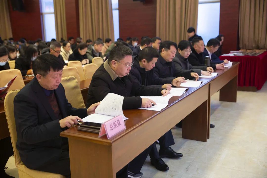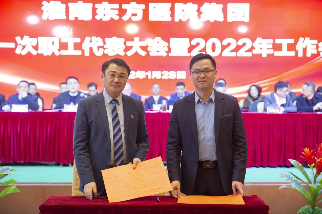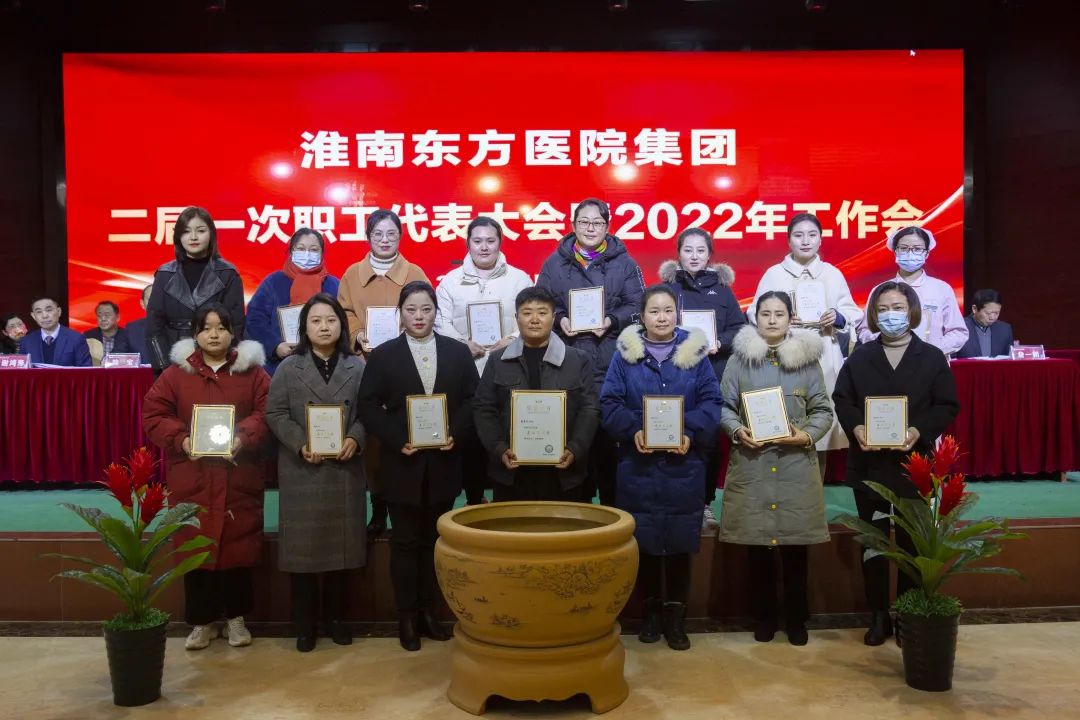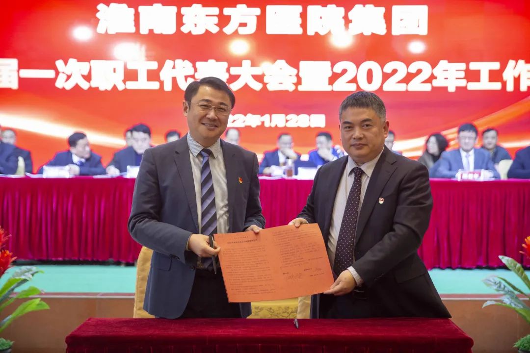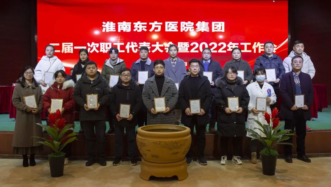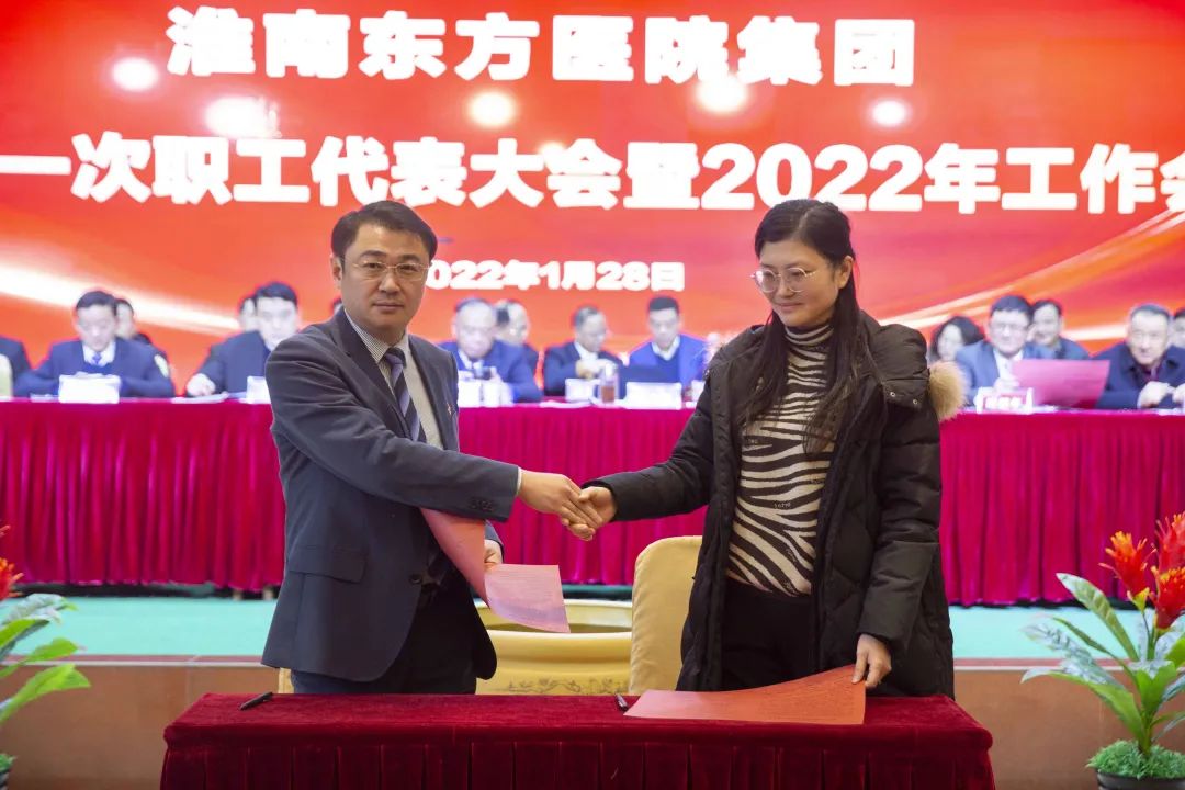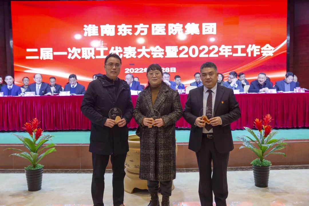 江永强董事长首先代表集团作党委和董事会工作报告。2021年,医院集团在疫情和医保支付改革的双重冲击下,全体东方人守望相助,执着坚守,交出了一份令人满意的东方答卷。这一年,集团领导班子顺利完成新老交替,实现平稳过渡,集团整体运营健康、有序、稳定,先后办成了一批要事、干好了一批大事、解决了一批难事、促成了一批喜事,实现了稳步向前发展。回顾2021,医院集团通过职级改革树目标、立方向、定标准,加强中层考核,强化责任担当,选拔出一批想干事、能干事、干成事的优秀人才,为集团高质量发展、提升核心竞争力奠定了坚实基础;通过推动财务、药事、医保、信息等部门集团化管理,上下一盘棋,发挥出显著作用;通过病区整合,优化人力资源配置,提高了运行效率,促进了服务提升;通过加强行政和财务管理,强化统一招标、议价对比、体量压价等方式发挥集团独特优势,开源节流取得显著成效;通过关爱职工、坚持米油文化、普涨工资,充分保障了员工利益,实现了员工人均年收入同比较大幅度增长。2021年,集团坚持技术创新、服务创新、靠前服务,让市民“足不出淮”就享受到真正高水平的诊疗服务,一系列便民惠民举措赢得政府信任、百姓称赞。集团以“5G+智慧医疗”战略合作项目为契机,全面升级医院信息化系统,实现数据互联互通,“整体上云”。充分发挥安徽理工大学附属医院等平台优势,科研、教学工作取得重大突破,获得诸多荣誉。医院集团坚持党建引领,扎实开展党史学习教育,深入开展“我为群众办实事”实践活动,推进党建与医疗工作深度融合,努力打造社会组织党建工作标杆,为医院集团发展提供了坚强的政治保证。多措并举下,集团发展展现了强劲动力和生命力,国家卫健委及省、市领导多次莅临医院视察指导,对医院创新管理、疫情防控、预防接种等工作给予充分肯定;医院集团连续多年在“中国医院竞争力排行榜”中名列前茅,总院、肿瘤医院、凤凰医院也同时登榜,充分彰显了医院集团在全国的竞争力和影响力;集团在安徽省紧密型城市医联体建设暨城市卫生工作现场会上的经验分享,受到省卫健委领导多次表扬,以及省内同行的一致认可,社会影响力空前提升。