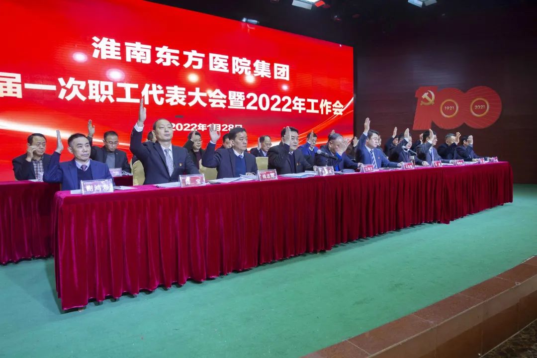 虎添双翼前程远,大展宏图事业新。历经十八载栉风沐雨,砥励发展,东方医院集团在一次次自我革新和超越中踔厉奋发、笃行不怠,以不负历史、不负时代、不负使命的锐气和勇气,率领3700名东方人创造了一个又一个令人惊叹的“东方奇迹”和“高光”时刻!面对时代发展的滚滚洪流,为顺应发展、顺应改革,1月28日,东方医院集团在总院多功能厅隆重召开集团二届一次职工代表大会暨2022年工作会,对2021年工作进行全面总结,2022年工作进行精准部署,同时对集团各项制度修订进行审议并表决。医院集团党委、董事会成员,各医院管理层、全体职工代表及列席代表参加了大会。